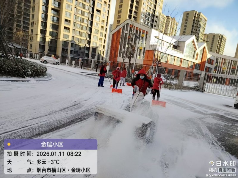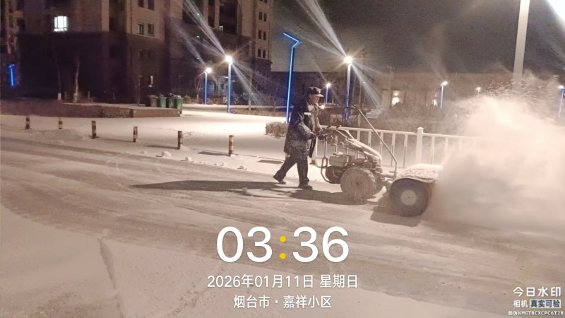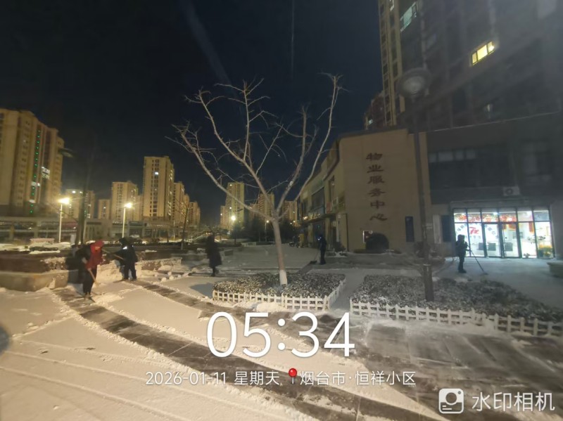 胶东在线1月13日讯(通讯员 姚晓丽 牟绍铭)近日,2026年的第一场大雪翩然而至,一夜之间,园区被银装素裹,成了冬日里难得的景致。但美景之下,积雪覆盖路面,结冰隐患暗藏,给业主出行带来诸多不便,也埋下了安全风险。雪情即是命令,福新物业迅速启动应急预案,以雪为令、闻雪而动,在寒冬凌晨打响了一场热火朝天的清雪攻坚战。