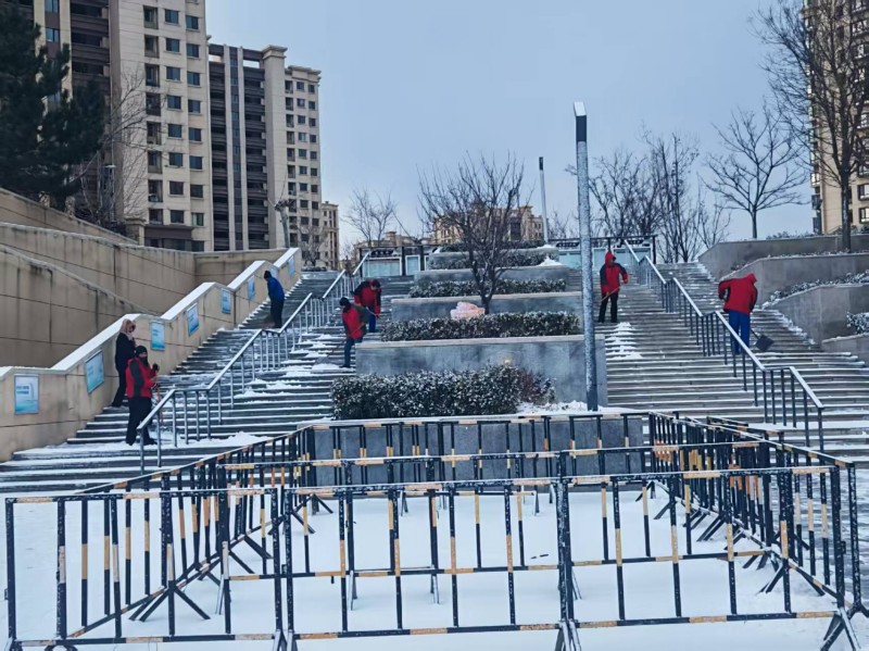 凛冽寒风挡不住奋进脚步,皑皑白雪映照着责任担当。经过数小时的奋战,园区路面积雪基本清除干净,一条条畅通无阻的道路重新呈现,为业主日常出行提供了安全保障。